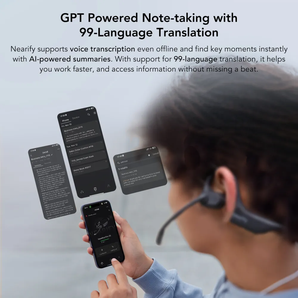 Thiết kế open-ear & headband nhẹ — Thoải mái cả ngày và giữ tương tác với môi trường.