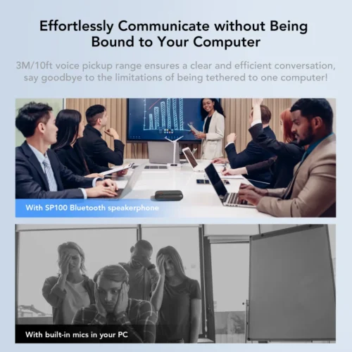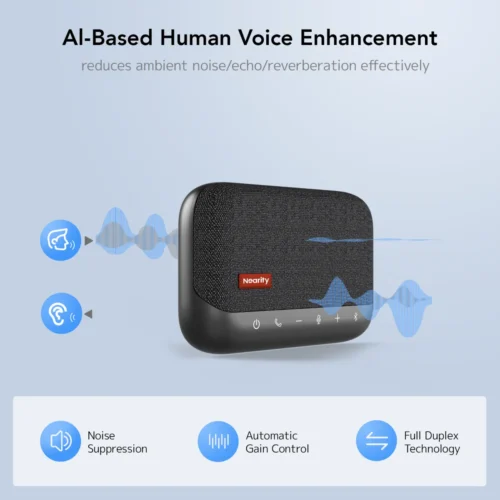 Nearity SP100 là thiết bị hội nghị di động tích hợp loa và micro, lý tưởng cho văn phòng trực tuyến, phòng họp nhỏ và cộng tác từ xa. Với 4 micro MEMS thu âm 360° và công nghệ khử ồn AI/echo cancellation, âm thanh dù từ xa hay trong môi trường ồn vẫn rõ ràng và đầy đủ. Thiết bị hỗ trợ full-duplex và Automatic Gain Control (AGC) giúp mọi người có thể nói đồng thời mà chất lượng vẫn được duy trì đồng đều.