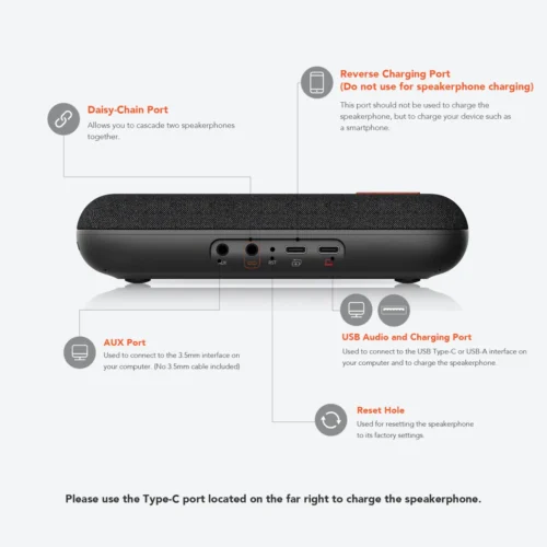 Kết nối đa dạng với Bluetooth 5.0, USB-C/A hoặc thông qua dongle, tương thích nhanh chóng với hầu hết hệ điều hành và nền tảng hội nghị (Zoom, Teams, Google Meet, Webex…).Vỏ thiết kế nhẹ chỉ ~375 g, dễ mang theo cùng pin tích hợp 2600 mAh, dùng liên tục đến 8 giờ và có khả năng reverse charging cho điện thoại khi cần.