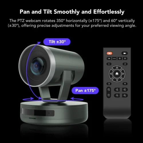 Xoay ngang 350° / dọc 60° với điều khiển từ xa linh hoạt.