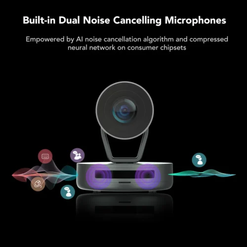 Công nghệ AI khử ồn với 2 micro MEMS tích hợp bảo đảm giọng nói rõ ràng, loại bỏ tạp âm, ngay cả trong môi trường nhiều tiếng động. V410 hỗ trợ giao thức NDI và RTSP, dễ dàng kết nối và truyền tải hình ảnh, âm thanh qua mạng Ethernet tiêu chuẩn.